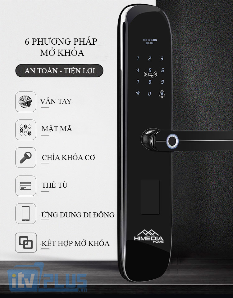 - Có 6 chế độ mở cửa: vân tay, mật mã, thẻ từ, chìa khóa cơ, ứng dụng di động và kết hợp mở khóa