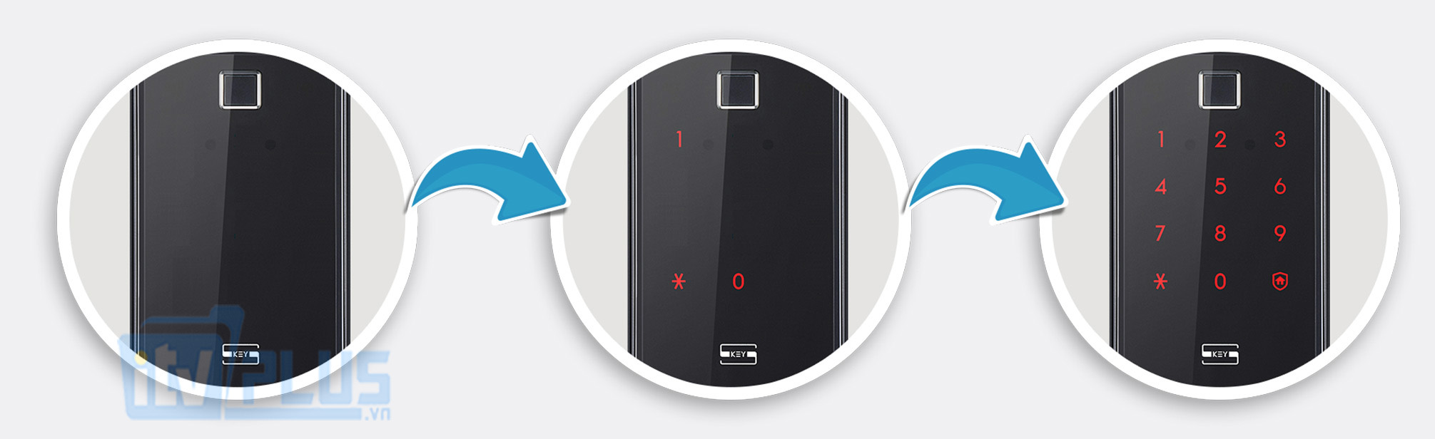 - Màn hình cảm ứng, hiển thị trạng thái: ‘Locked’. ‘Unlocked’