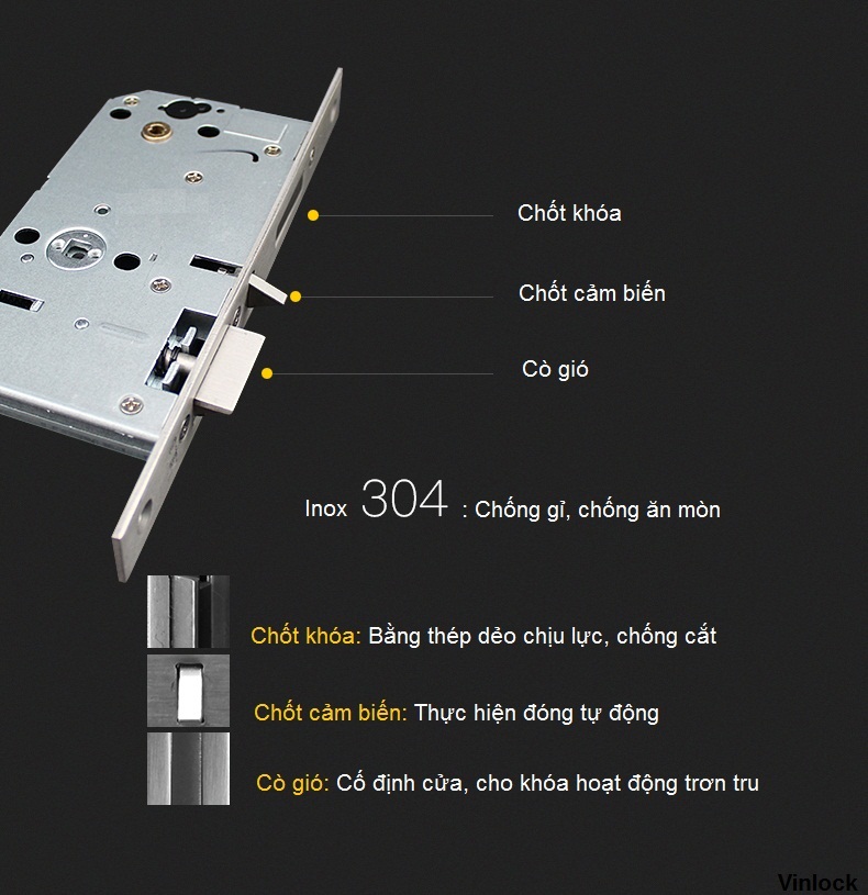 - Chốt khóa trái đảm bảo an toàn và riêng tư tuyệt đối với chế độ khóa trái trong
