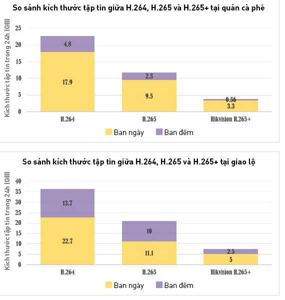 Ngoài việc băng thông giảm đi 1/2 so với chuẩn nén H.264, H.265 còn có thể đem lại hình ảnh, chất lượng cao nhưng dung lượng ghi hình cũng giảm đi một nữa.