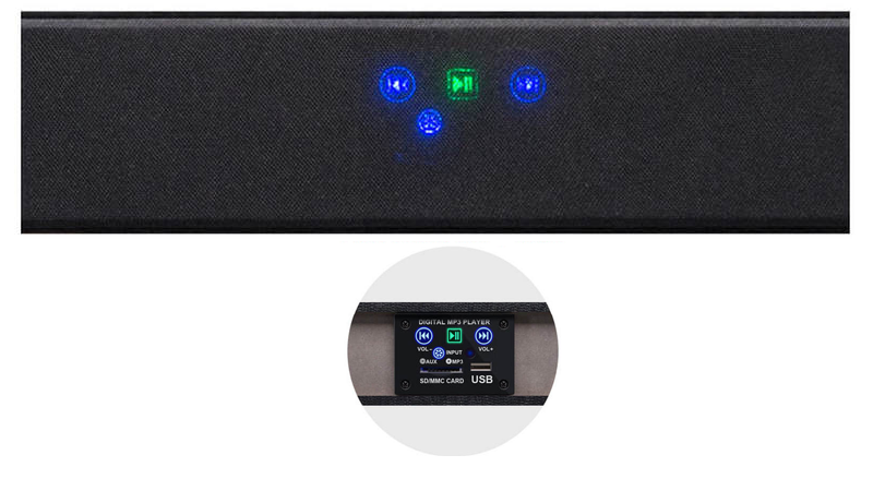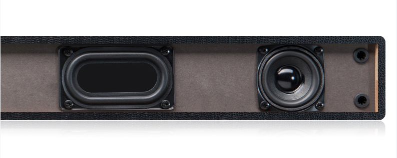 Thiết kế dạng thanh, chất liệu nhựa ABS giả da cao cấp, màng loa có thể tháo rời