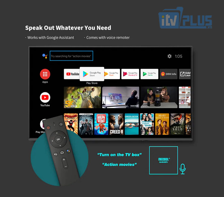 Sử dụng giọng nói bằng Voice Remote để mở video, xem phim, xem truyền hình trên Youtube nhanh chóng mà không cần nhập từng ký tự trên bàn phím ảo trên màn hình.