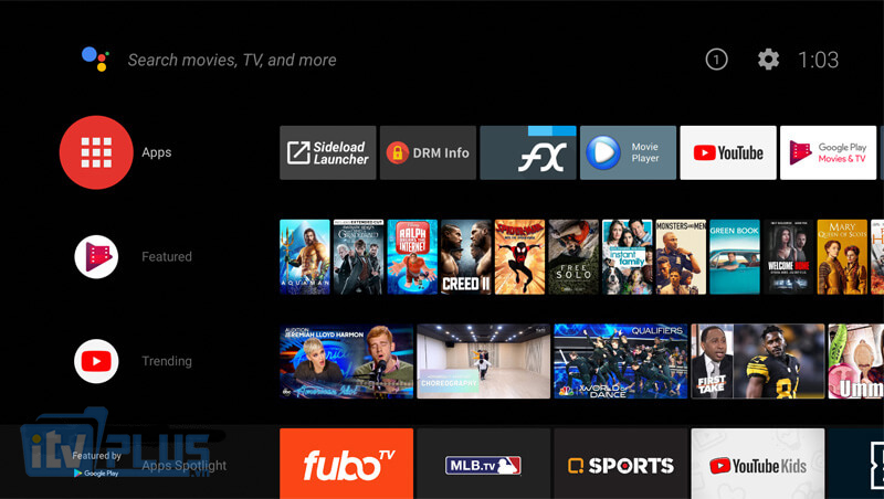 Hệ điều hành Android TV 9.0 với giao diện bắt mắt