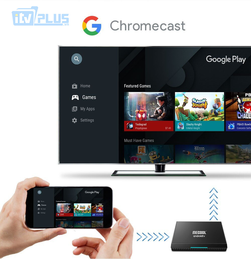 - Tính năng Google Cast giúp hỗ trợ chiếu màn hình điện thoại lên tivi và có thể điều khiển trực tiếp thông qua Smartphone.