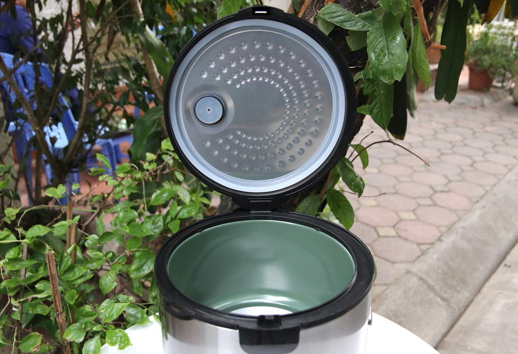 Lòng nồi làm từ hợp kim nhôm phủ lớp chống dính Nanoford cao cấp bền đẹp chịu được nhiệt độ cao, vệ sinh dễ dàng và không phát sinh các khí độc hại trong quá trình sử dụng, không chứa các độc tố gây hại cho sức khỏe. Mâm nhiệt cao cấp giúp tỏa nhiệt đều để cơm chín được nhanh hơn với công suất 900W
