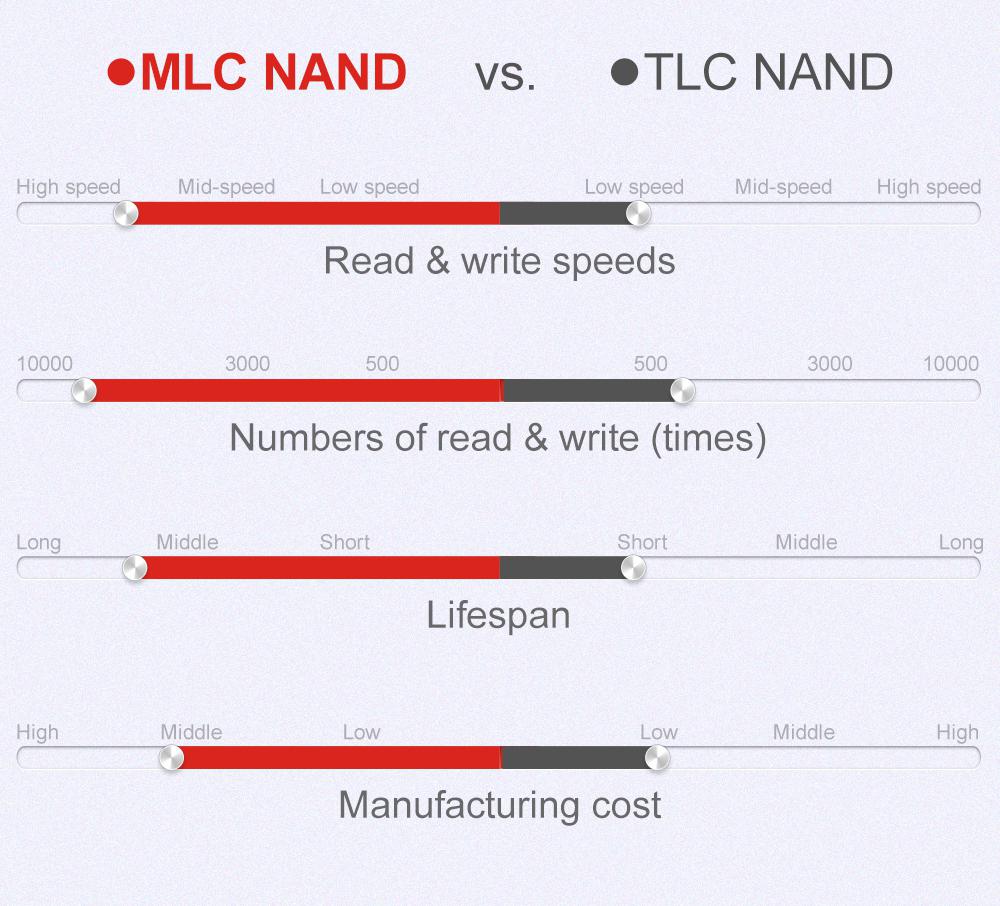 Kết quả so sánh đối chiếu giữa hai công nghệ chip nhớ MLC NAND và TLC NAND