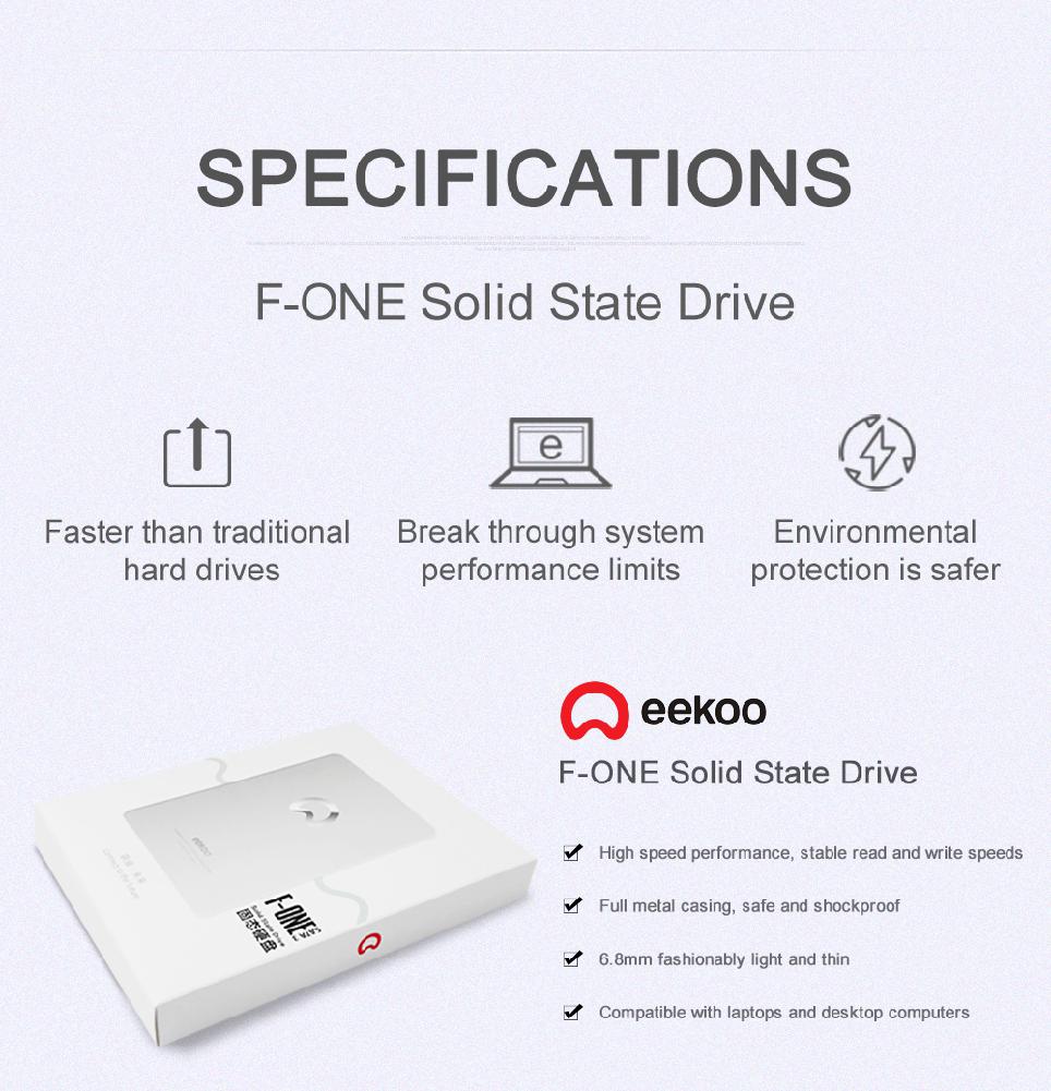 Ổ cứng SSD EEKOO V-100, F-ONE với tốc độ nhanh và ổn định nhất, là một phát minh của thời đại. Thiết kế vỏ kim loại đúc rất tinh tế và đẹp mắt, an toàn, chống sốc.