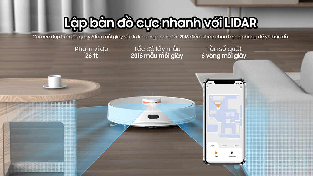 - Cảm biến Lidar thông minh, lực hút siêu mạnh lên tới 3.000 Pascal,