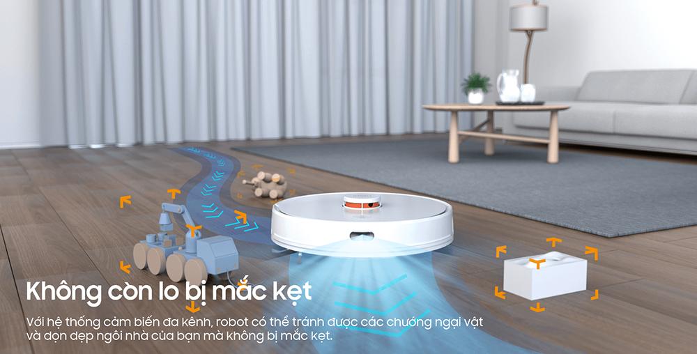 Với hệ thống cảm biến đa kênh, robot có thể tránh được các chướng ngại vật, và dọn dẹp ngôi nhà của bạn mà không bị mắc kẹt.