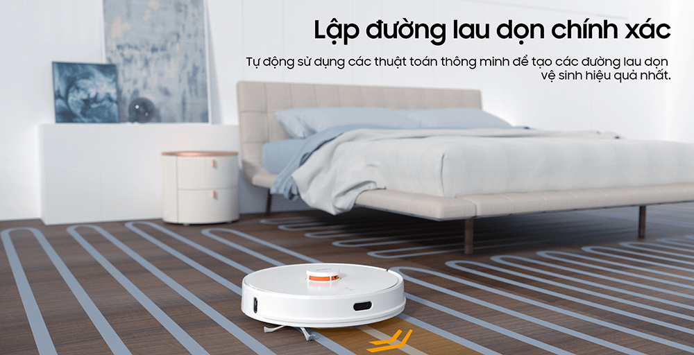 - Tự động chạy quanh nhà để làm sạch, tự động sạc pin khi xong việc,