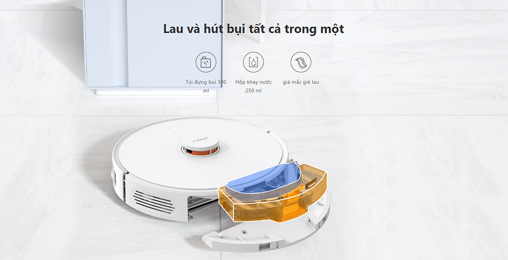 Điều làm Imou RV1C cao cấp hơn, thông minh hơn, là cơ chế hoạt động được tích hợp cả quét, hút bụi và lau nhà trong một lần lau dọn, tính năng cảm biến phát hiện thảm và tự động thay đổi công suất hút.