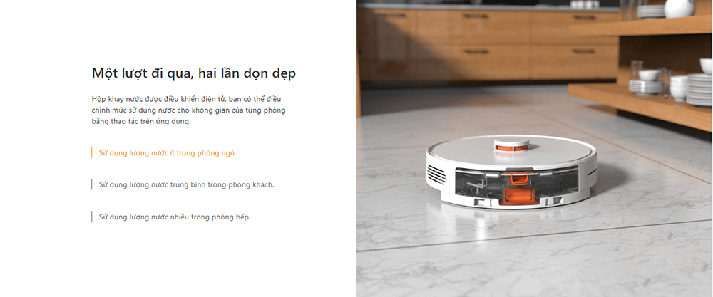 Robot hút bụi có thể được điều khiển thông qua APP ImouLife. Bạn có thể điều chỉnh được lực hút, phần phối nước và thiết lập các khu vực làm sạch