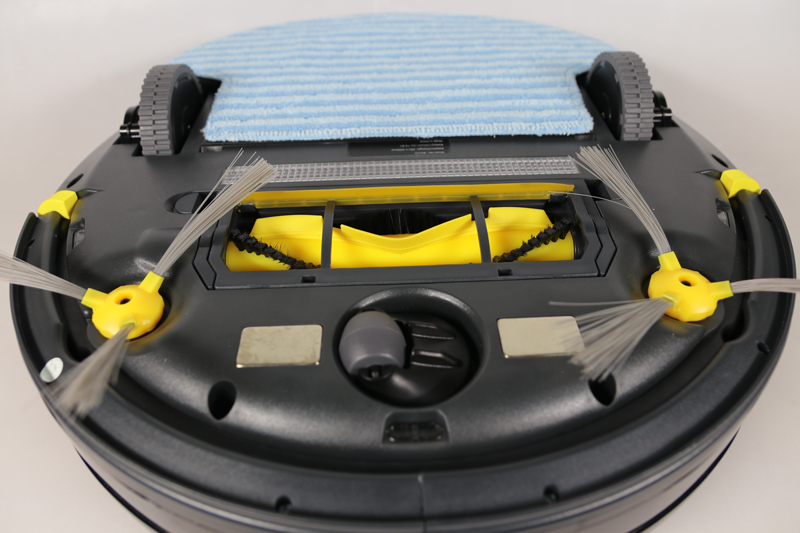 Mặt dưới hoàn hảo đến từng chi tiết, gồm các cụm chổi quét với tốc độ cao, bánh xe xay 360 độ và bộ phận hút bụi chuyên nghiệp