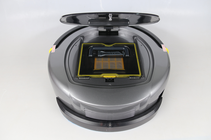 - Để robot làm nhiệm vụ hút bụi thì thao tác rất đơn giản. Các bạn ấn vào nút Push ở mặt trước của máy, sau đó cho hộp chứa bụi vào và ấn nút Clean là robot sẽ làm sạch căn nhà của bạn hoàn toàn tự động. Ở chế độ này, robot chạy rất êm, gần như không có tiếng động.