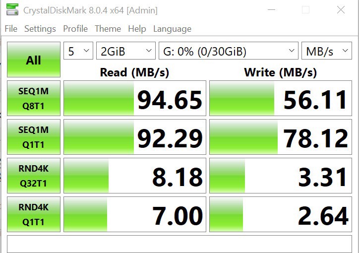- Hiệu suất cao, tốc độ đọc nhanh đến 80MB/s.