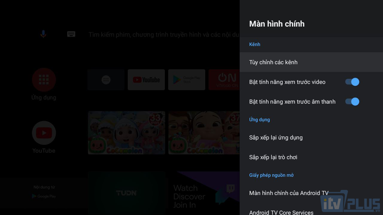 Giao diện Google Android TV mới nhất. Hỗ trợ nhiều tùy biến giao diện với các ứng dụng được Google hỗ trợ