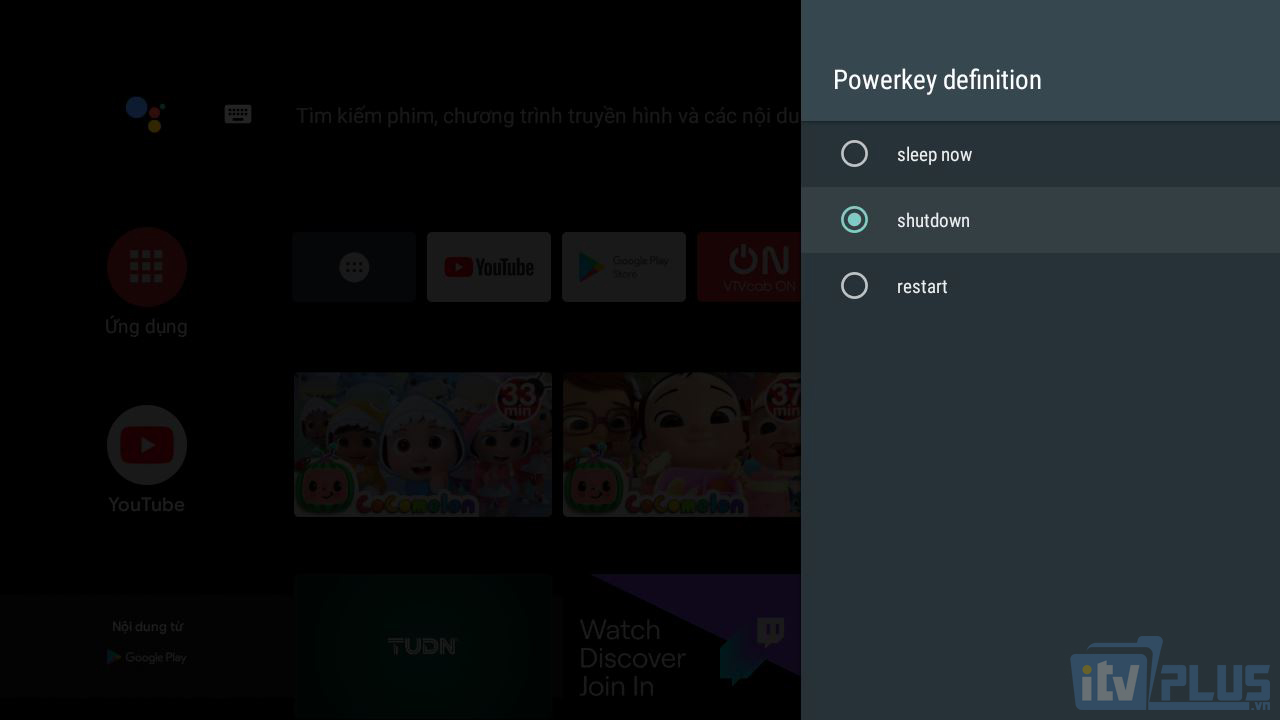 Tùy biến được nút chức năng Power trên điều khiển. Có thể chọn chế độ ngủ, chế độ tắt hẳn hoặc chế độ khởi động lại