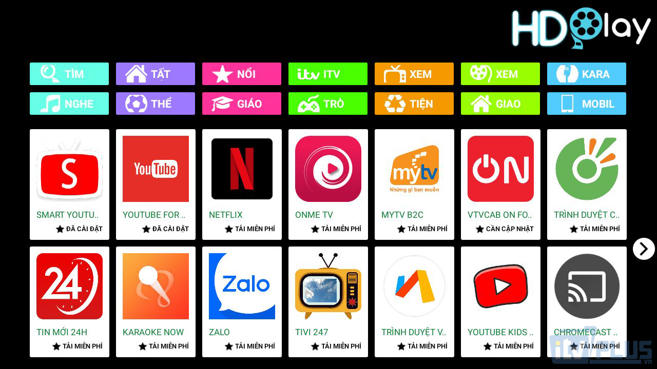 Tích hợp sẵn kho ứng dụng HDPlay Store cũng như các ứng dụng giải trí phổ biến hiện nay.