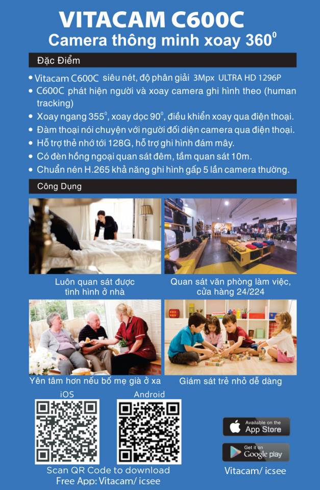 - VITACAM C600C thuộc dòng cam quay quét 360 độ cung cấp phạm vi bao phủ với trường nhìn mở rộng.