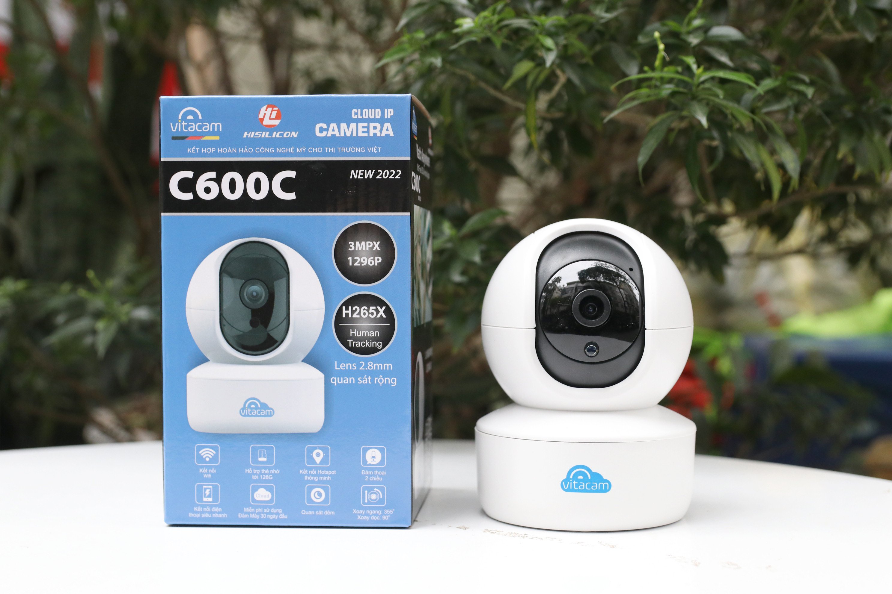 Camera Wifi VITACAM C600C - 3MP 1296P Mẫu Mới 2023, Độ phân giải 2K, Loa To, đàm thoại 2 chiều, cảnh báo chuyển động... bảo hành 2 năm.